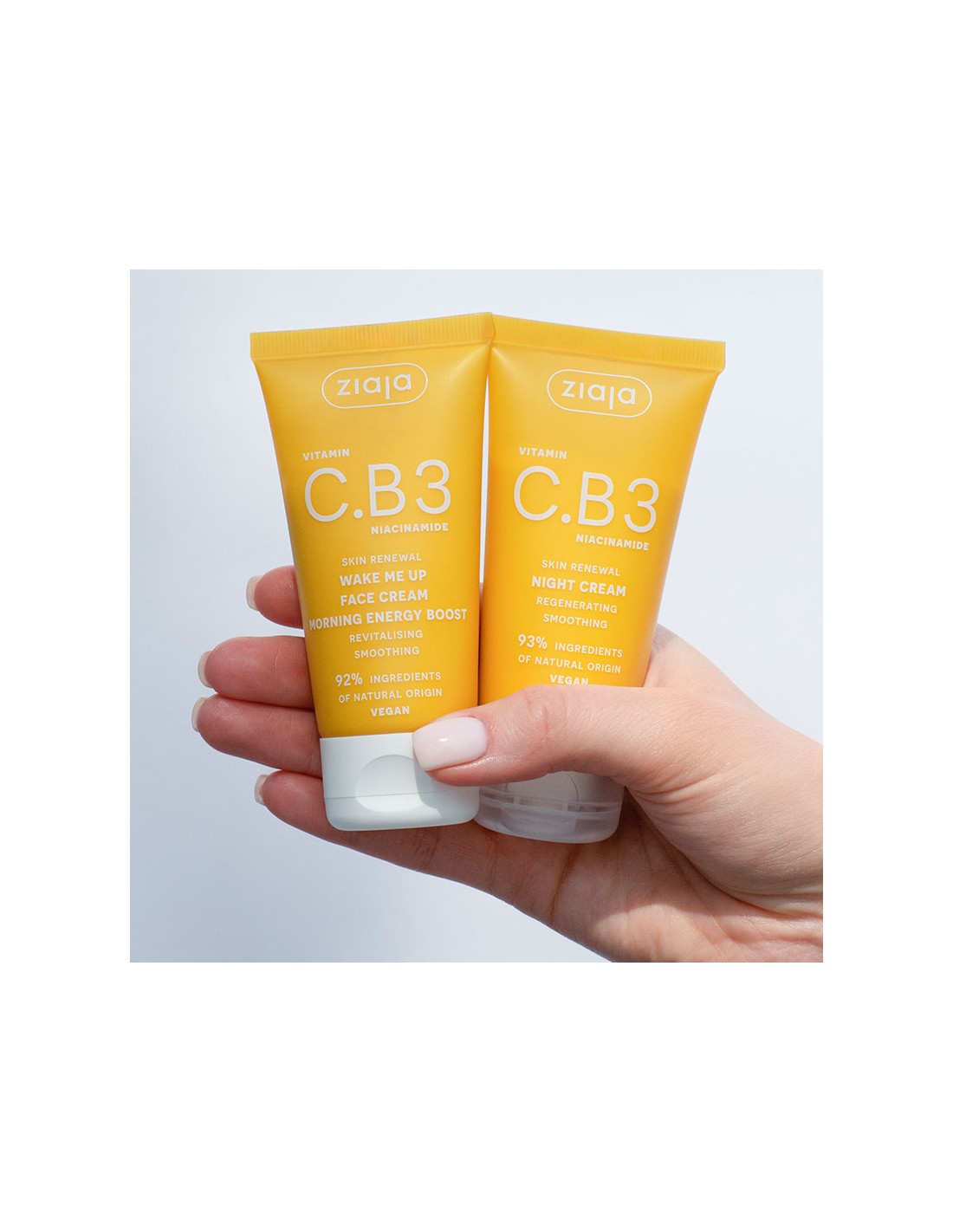 Línea Vitamina C.B3 Niacinamida: Una selección de 8 cosméticos veganos para el cuidado del rostro y el cuerpo diseñados con la tendencia flash effect, es decir, una revitalización intensiva de la piel basada en rituales cortos y sin múltiples etapas que pueden realizarse por la mañana después de despertarse y antes de acostarse como parte de la regeneración nocturna de la piel,