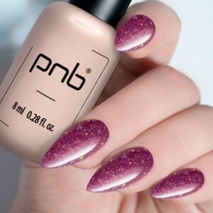 El PNB Esmalte semipermanente 373 Uncontrollable Desire es un tono rosa intenso y reflectante. Los rayos del sol coquetean con los elementos reflectantes, y las uñas se convierten en una exquisita imagen de brillante luz centelleante. Al igual que los frágiles pétalos de una flor rosa arrancada en un amplio jardín interactúan con la suave brisa, este color acaricia tus manos.