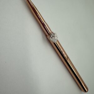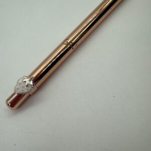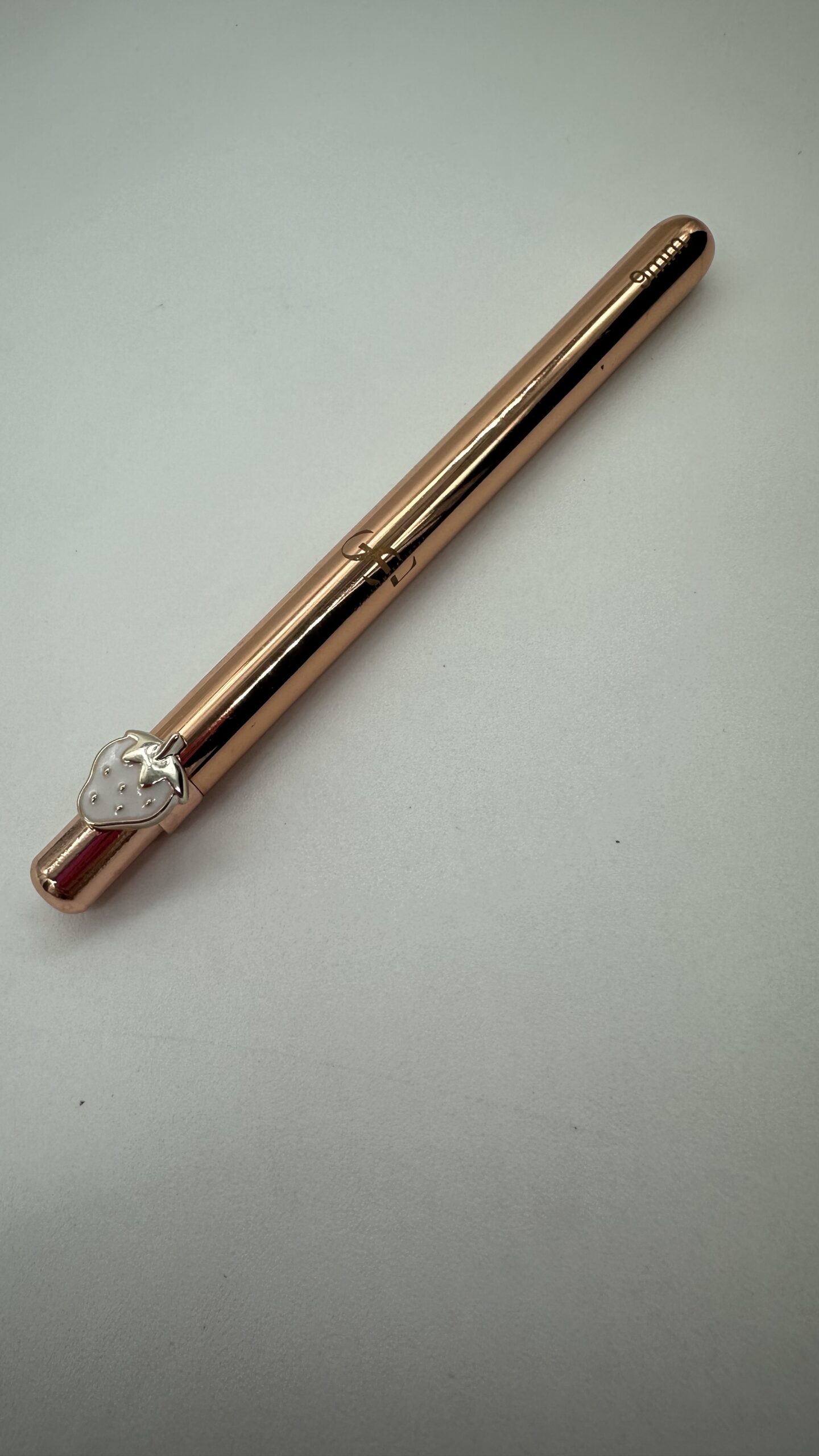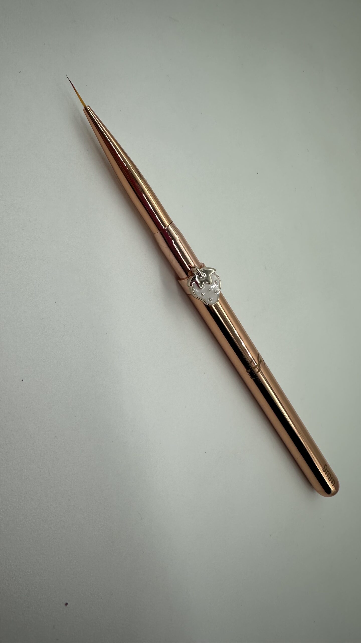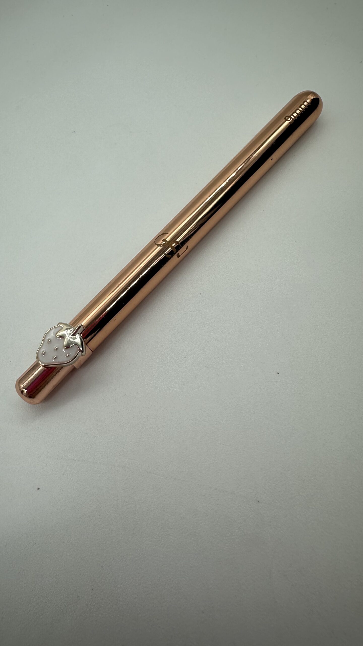 CON UN DISEÑO ESPECTACULAR EN ORO ROSA Y UN DETALLE MUY CUCI DE UNA FRESA QUE EVITA QUE NUESTRO PINCEL PUEDA RODAR.